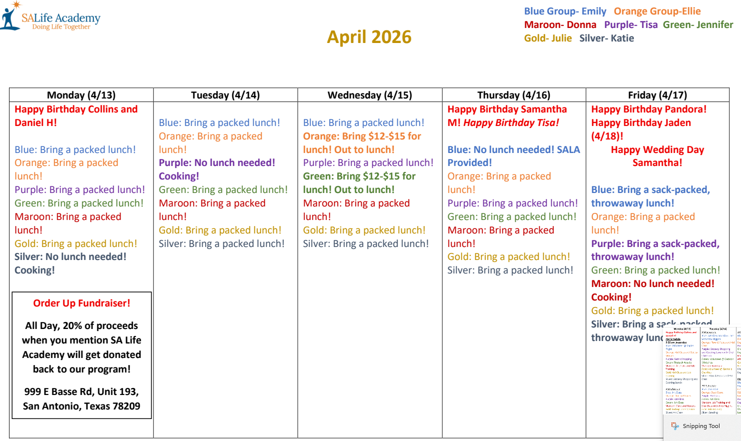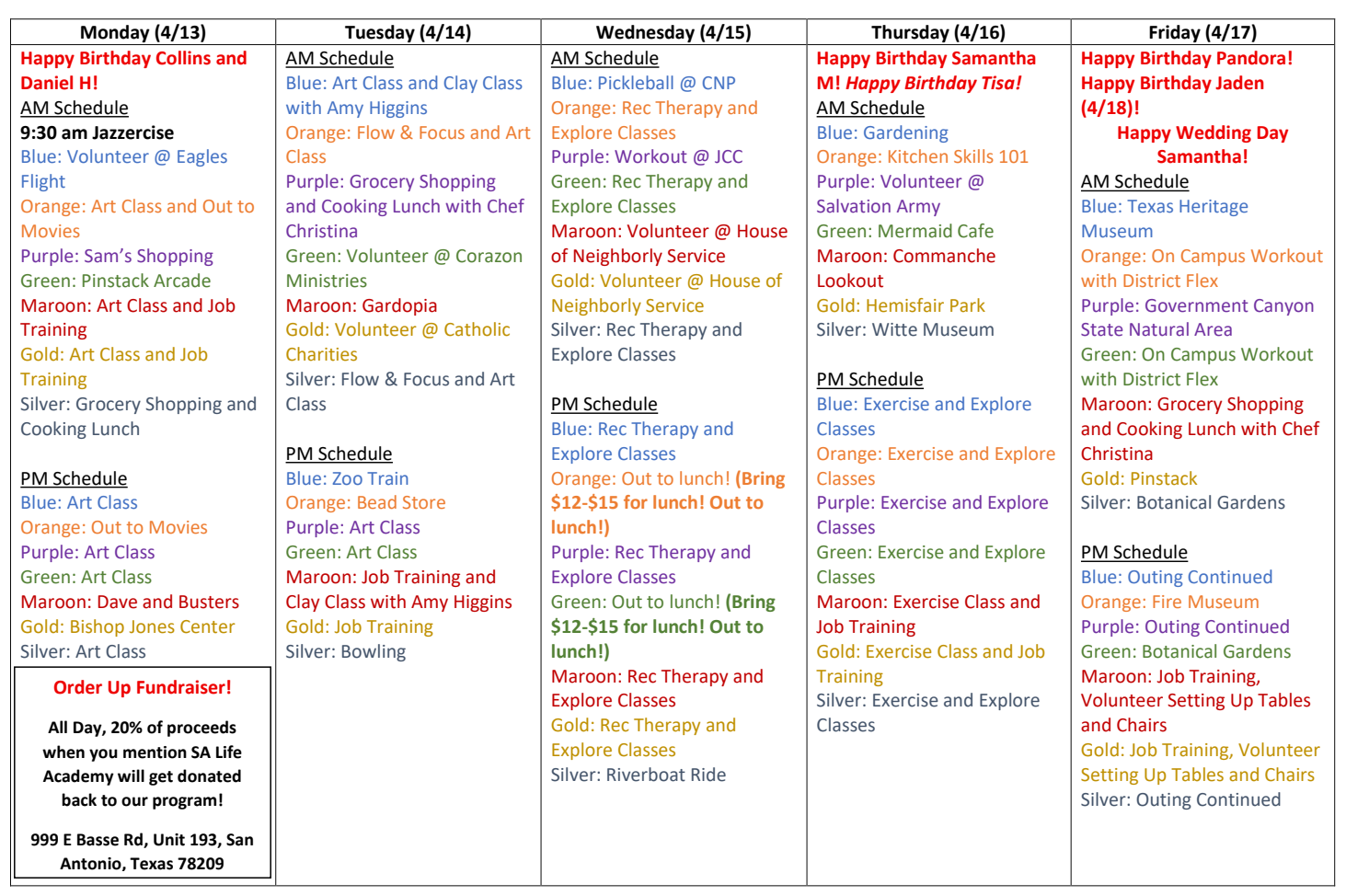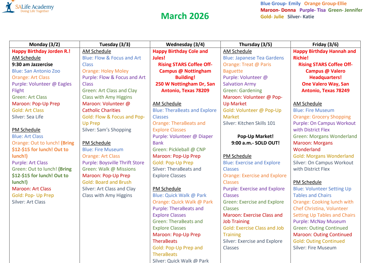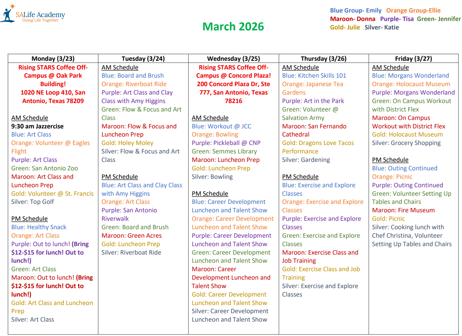 Rising STARS Coffee Truck Schedule